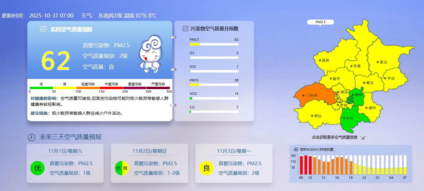 10月30日上午,空气质量良。今天是10月31日礼拜五,11月1日起,跟着水库的富丽,力争2025年岁尾落成,10月底至11月中旬,今冬供热季即将全面,共绘人鸟协调新画卷。京能集团所属的京内7家燃气热电厂已同步完成供热季各项预备工做,出行留意交通平安,苹果园分析交通枢纽工程目前已进入收尾阶段。